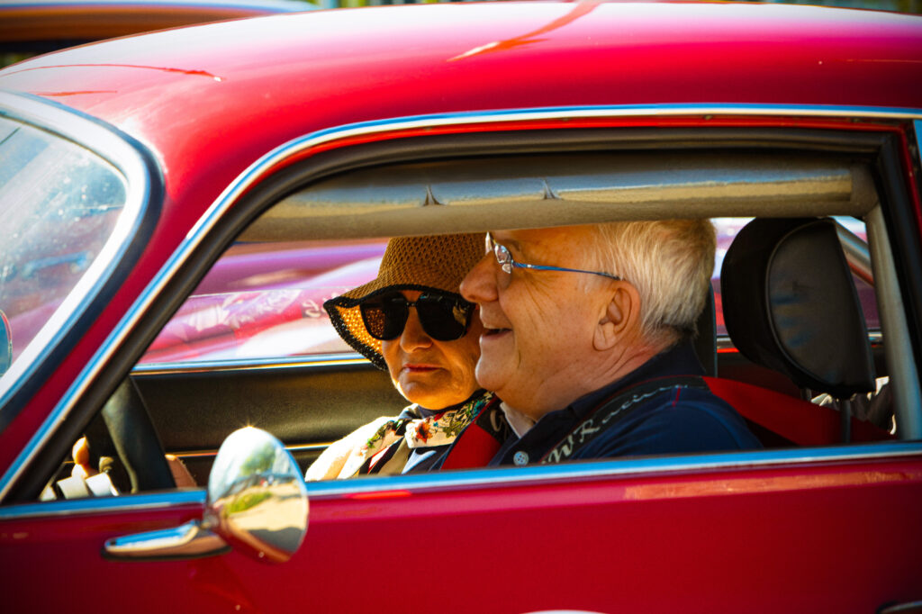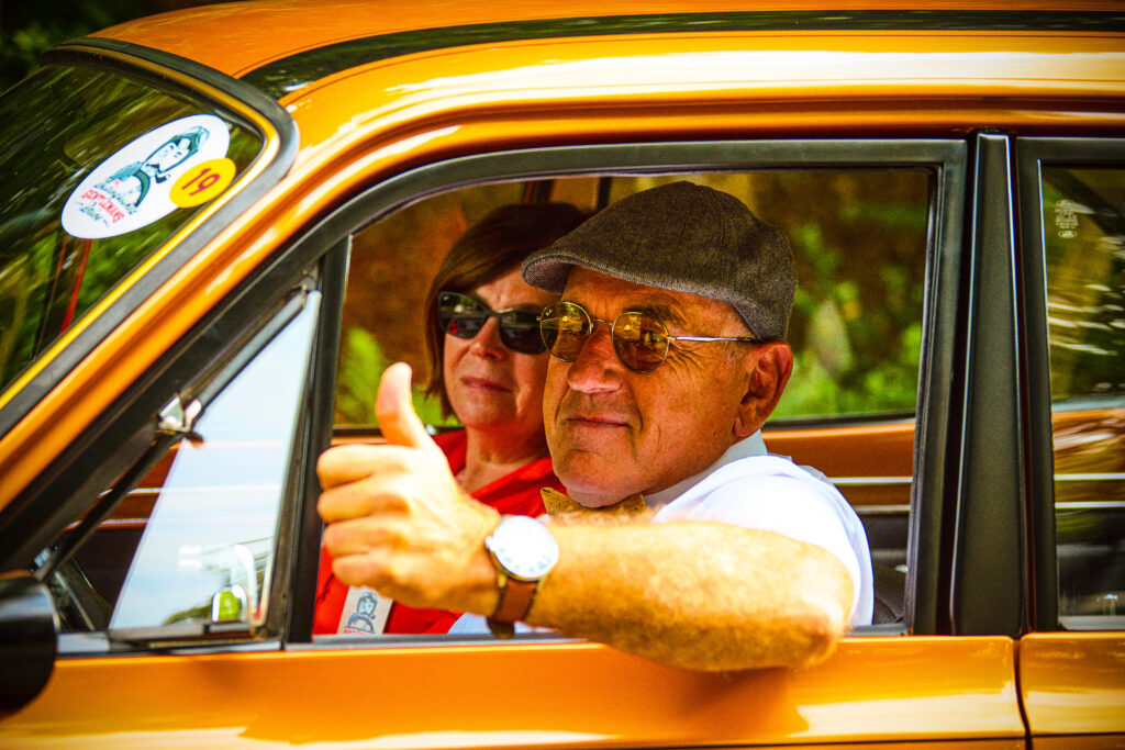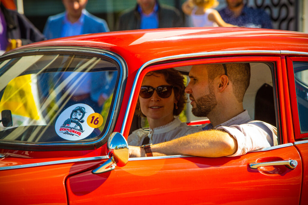 des milliers de gentlemen and gentle ladies, en tenues élégantes, à bord de belles automobiles d’avant 1986, participent à la Distinguished Gentleman’s Drive (DGD).